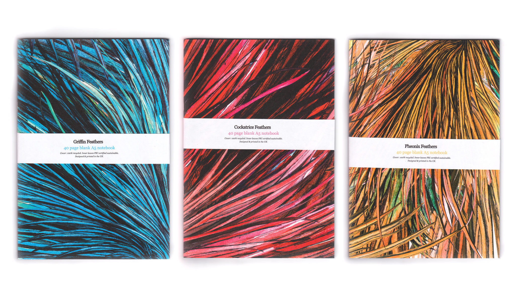 featuring my original watercolour, pen & ink illustrations of Cockatrice, Griffin & Phoenix feathers.