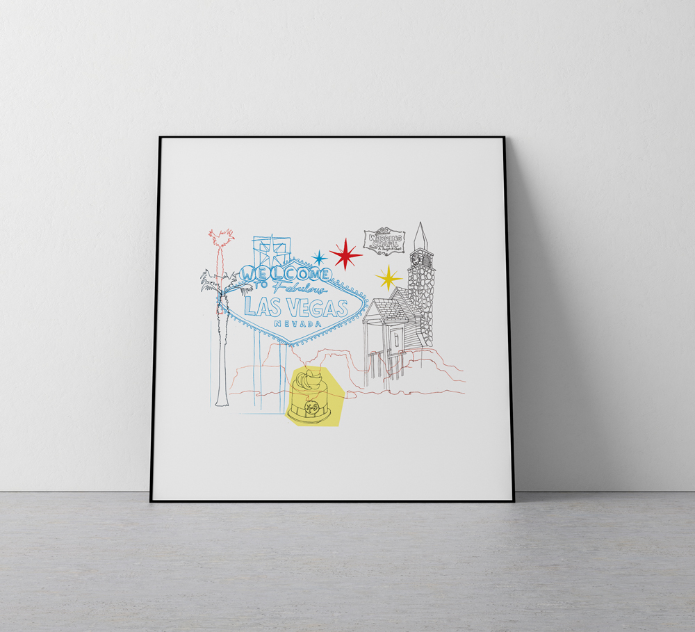 Illustration for editorial piece about Las Vegas wedding culture for the Guardian. I used both hand-drawn and digital line drawing techniques to create this