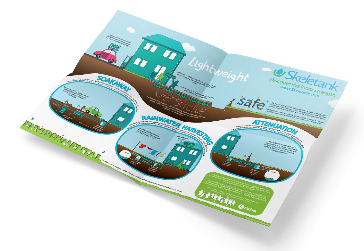 Full brand identity, logo design, brochure, animation, website and exhibition stand display design for SEL Environmental’s Skeletank Rainwater Harvesting Systrem product launch. I was sole art director responsible for creating a whole launch concept for the product’s reveal at Ecobuild 2010, Earl’s Court, London.